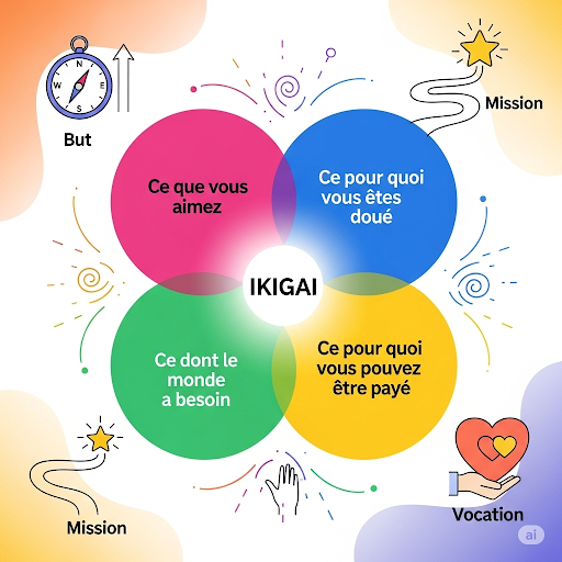 Voyage au coeur de votre vocation : programme de définition d'un projet professionnel avec l'ikigaï, pour adultes ayant déjà une expérience professionnelle.